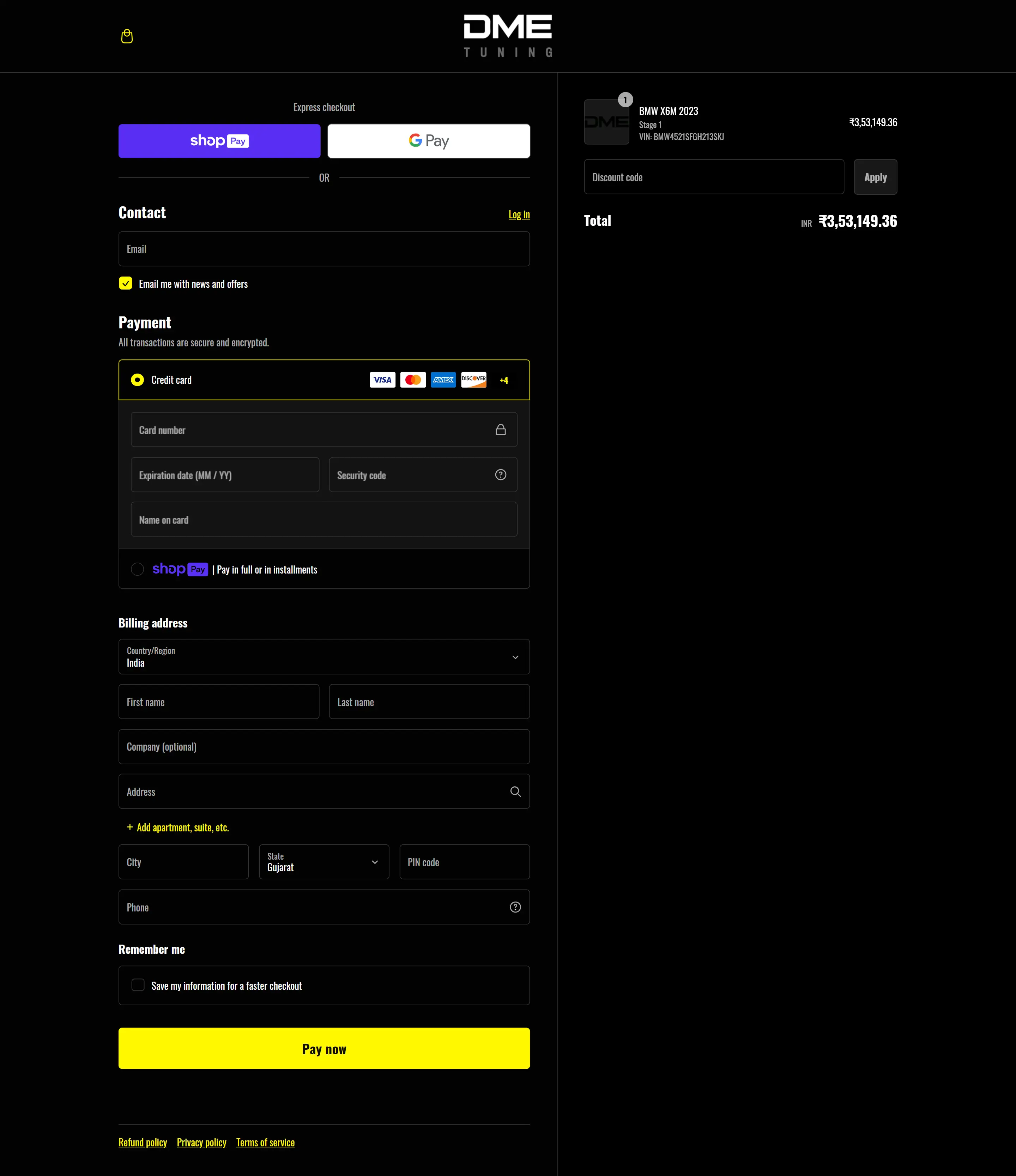 Checkout page